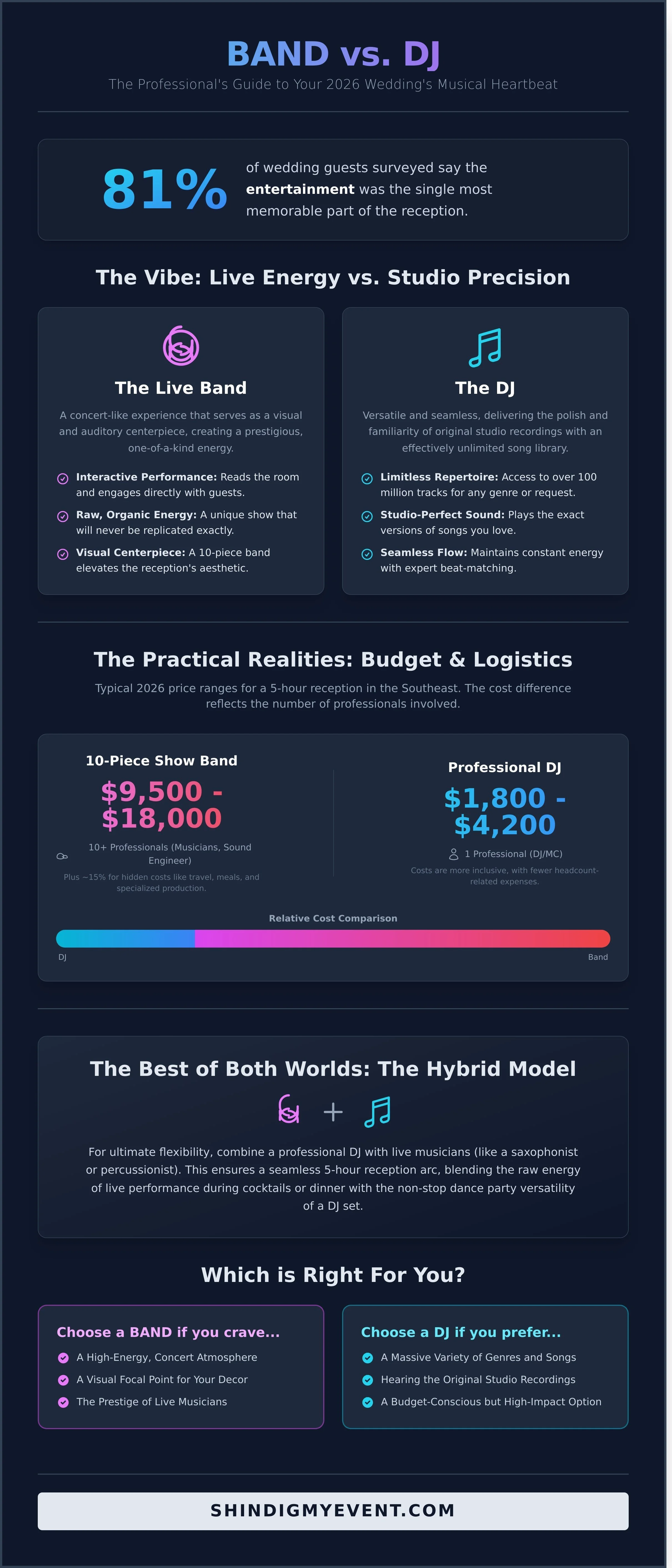 Band vs. DJ for Wedding: The Ultimate 2026 Guide to Choosing Your Vibe